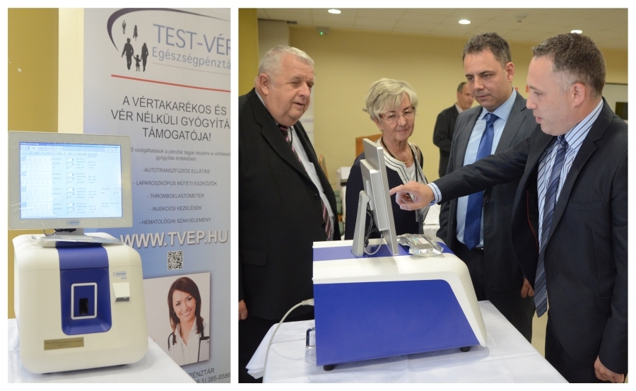 A TEST-VÉR Egészségpénztár jelenleg több mint 14 ezer tagot számlál, 20 évvel ezelőtti alapításakor a vér nélküli vagy vértakarékos gyógyítás szolgálatát vállalták fel. Az átadáson jelen lévő Dr. Ruttkay M. Géza, a TEST-VÉR Egészségpénztár igazgatótanácsának elnöke hangsúlyozta, alapelvük a szolidaritás elvének alkalmazása. – Minden hozzánk belépő pénztártag korlátlanul hozzáfér ehhez és a többi, általunk támogatott gyógymódhoz. De nem csak a TEST-VÉR Egészségpénztár tagjai kapják a szolgáltatást, hanem bárki, akiről az orvosok úgy ítélik meg, hogy a hatékony gyógyuláshoz hozzájárul ez a műszer. Ezzel is egy jó ügyet szolgálunk, remélve, minél több betegnél lehet alkalmazni a vértakarékos, vér nélküli gyógyítást – fogalmazott. Hozzátette, ez a készülék a tizenkilencedik, amit az ország különböző kórházaiban elhelyeztek, és a sort folytatni fogják.
